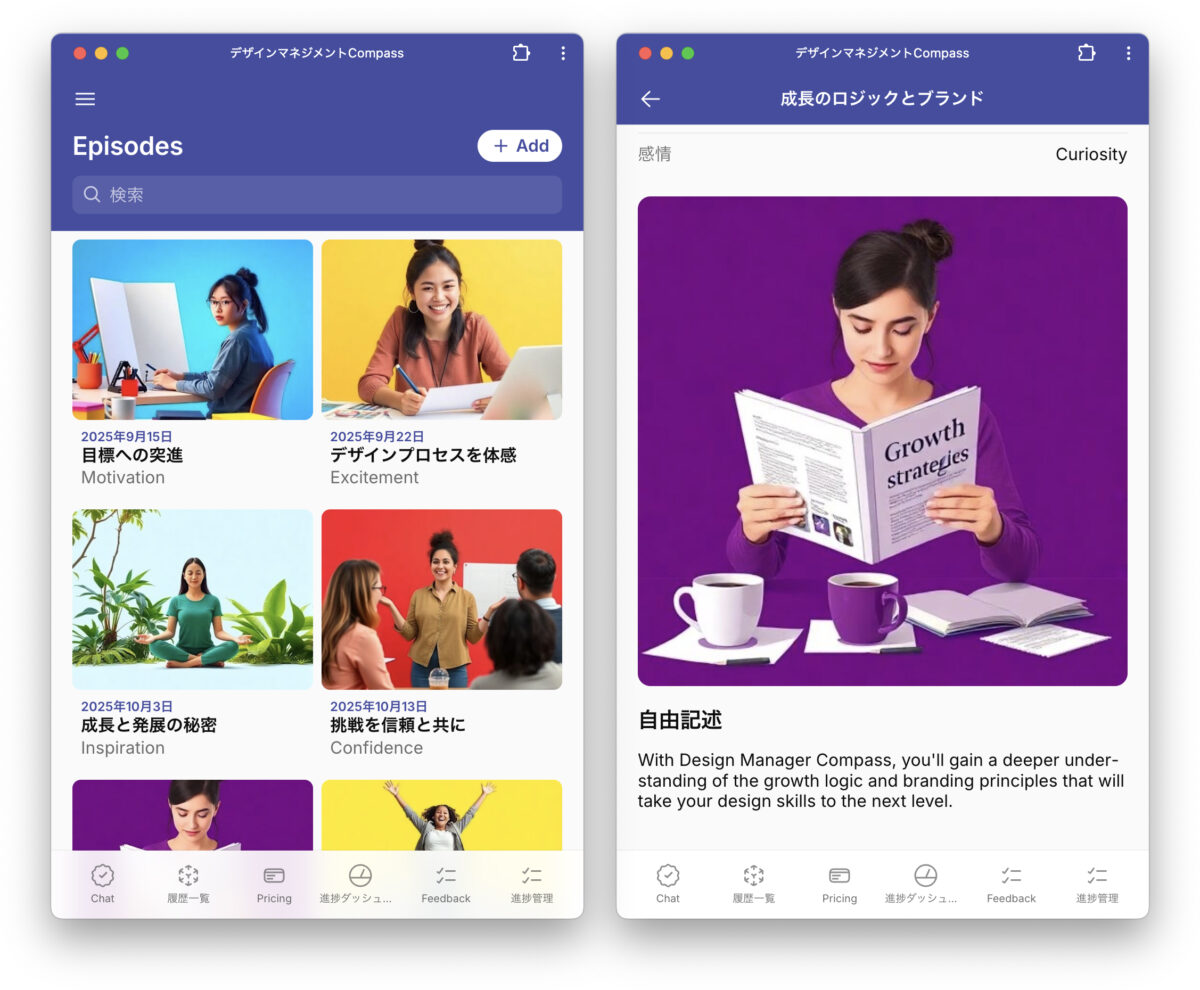 ユーザーがいきなり結論へ急かされるのではなく、価値が「育つ過程」そのものを尊重しながら進めるための設計です。