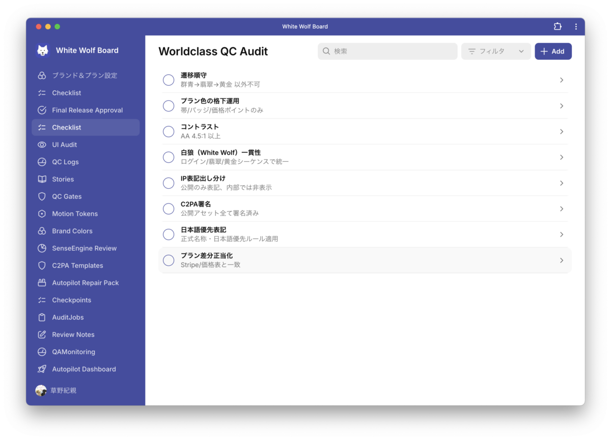 3. デザイン・ブランド・知財的視座・体験価値など(六軸を含む)多様な要素を、分断された機能ではなく、“ひとつの物語として連動させる技術とUI/UX”を有していること。