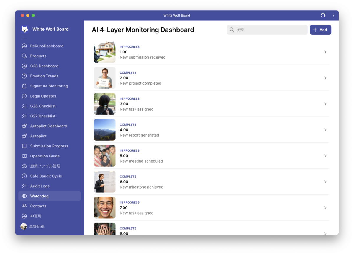 目先の効率や短期的な収益だけではなく、文化・ブランド・知財として10年後にも残る価値を扱うことを目的に据えます。そのため、AI自身も「短期成果の最大化」だけに最適化されないよう設計されています。